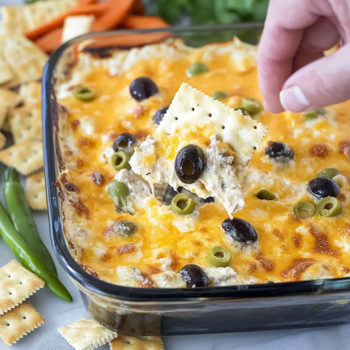 This Cheesy Baked Olive Dip is a must-have crowd-pleaser, blending green and black olives with creamy cheeses for unforgettable flavor.