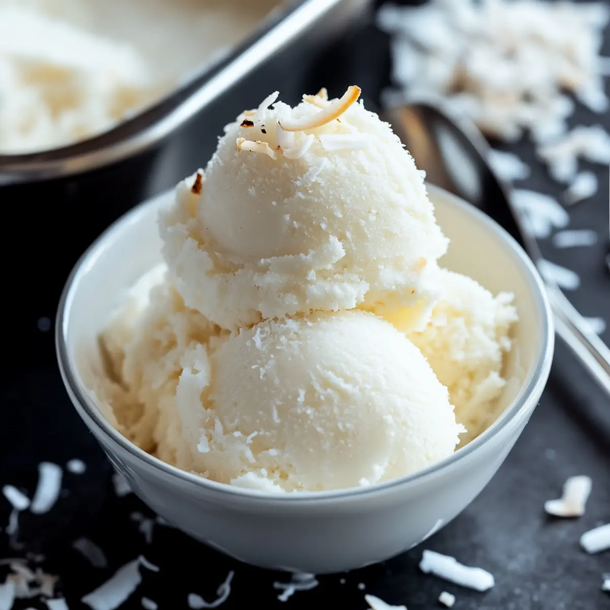 When ready to serve, remove the container from the freezer and let it sit at room temperature for a few minutes to soften slightly. Scoop the Coconut Sorbet into bowls or hollowed-out coconut shells for a fun presentation. Garnish with toasted coconut or your favorite nuts if desired, inviting your guests to enjoy this tropical treat.