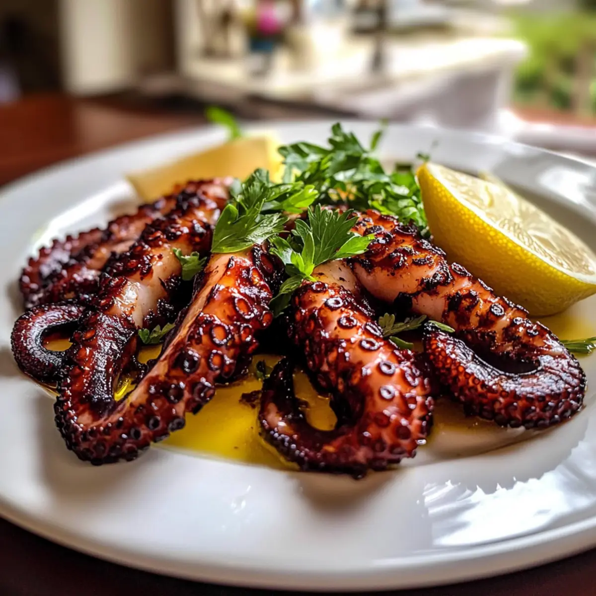 Pair the octopus with a glass of crisp white wine, like Sauvignon Blanc, to cut through the richness, or a light Mediterranean beer for a delightful contrast. Enjoy the experience!