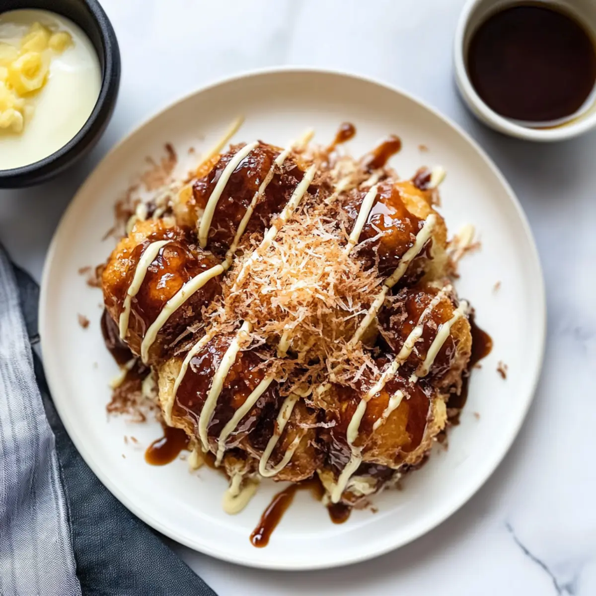 Bonito Flakes – Provides a savory, fishy contrast to the sweet sauce; optional, but enhances authenticity.