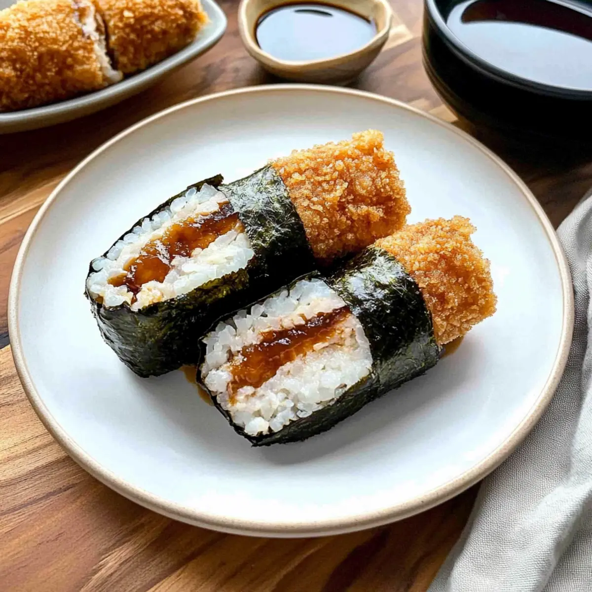• Sauce Experiment: Swap out tonkatsu sauce for a sweet chili sauce or even teriyaki for a new adventure. Each sauce brings a unique flavor profile that can redefine your Chicken Katsu Musubi experience.
