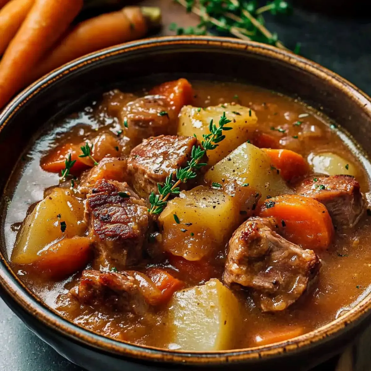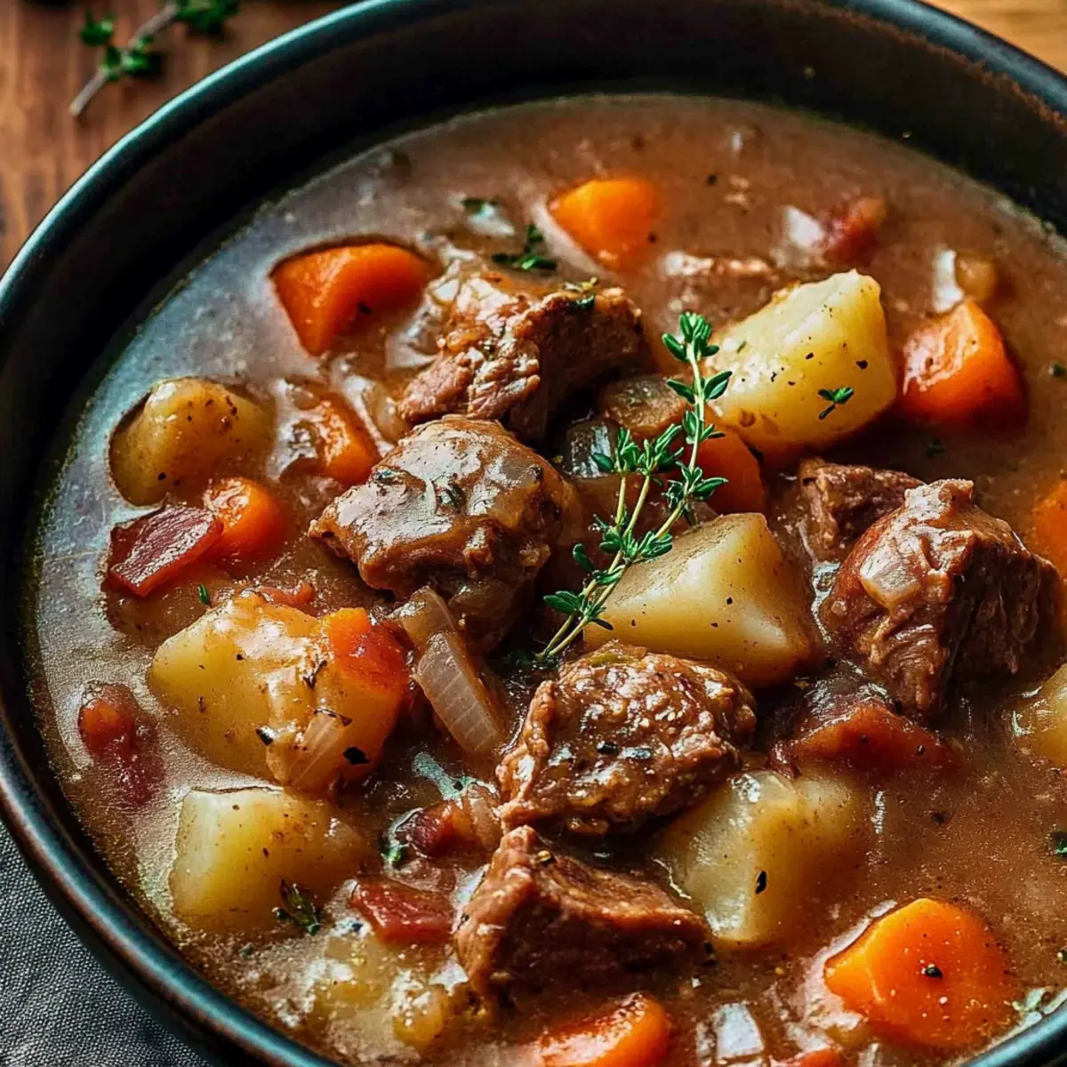 • Bacon – Adds a smoky depth to the stew; substitute with turkey bacon for a leaner version if desired.