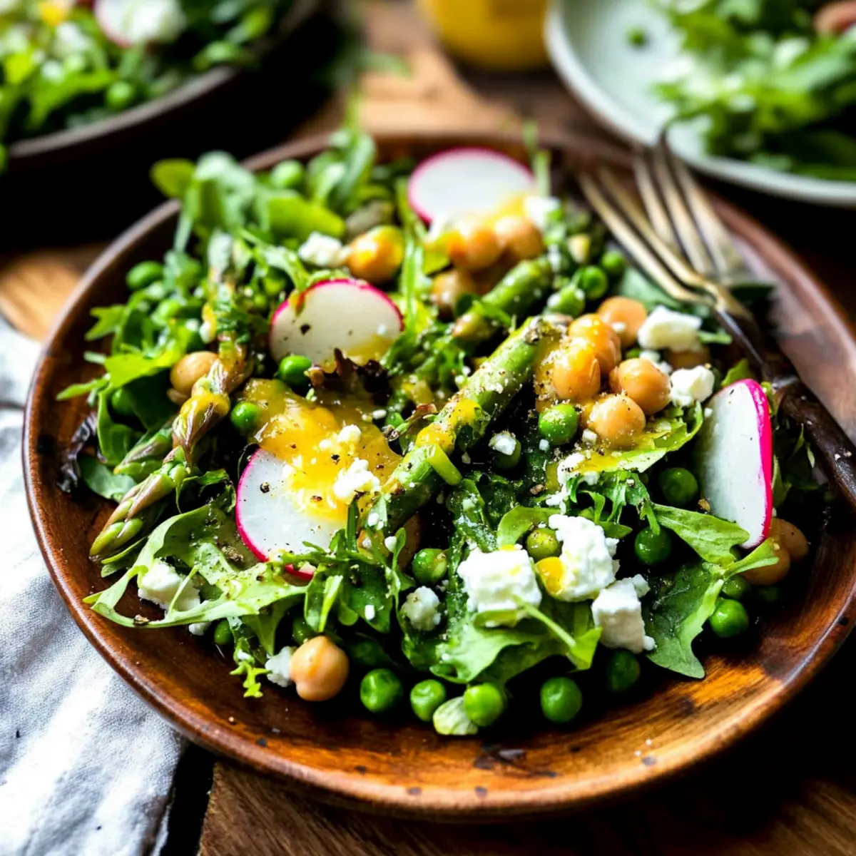 These delicious Easy Spring Salad components are perfect for busy home cooks looking to save time during the week! You can roast the chickpeas and prepare the vinaigrette up to 3 days in advance; simply store each in an airtight container in the refrigerator. To keep your salad fresh, chop your vegetables (like asparagus, cucumber, and radishes) up to 24 hours ahead of time, storing them in separate containers to maintain their crispness. When you’re ready to serve, just toss the prepped ingredients with the dressing, and you’ll have a restaurant-quality dish ready in minutes. With this make-ahead strategy, enjoy more time relaxing and less time in the kitchen!