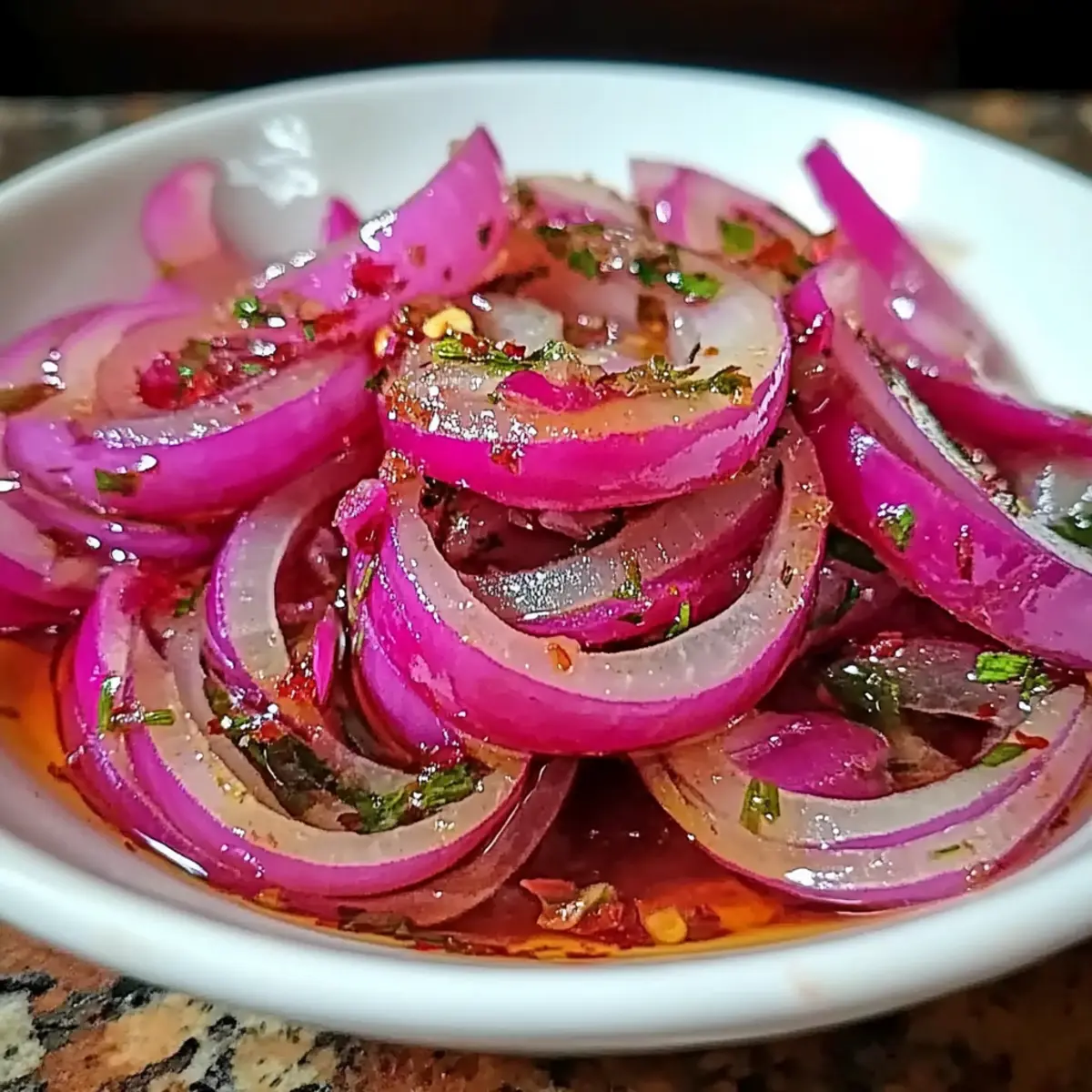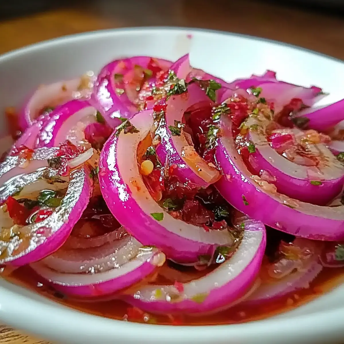 • Red Onions – The primary ingredient; their crisp texture absorbs flavors well. Use white or yellow onions if desired, although the taste and color will vary.