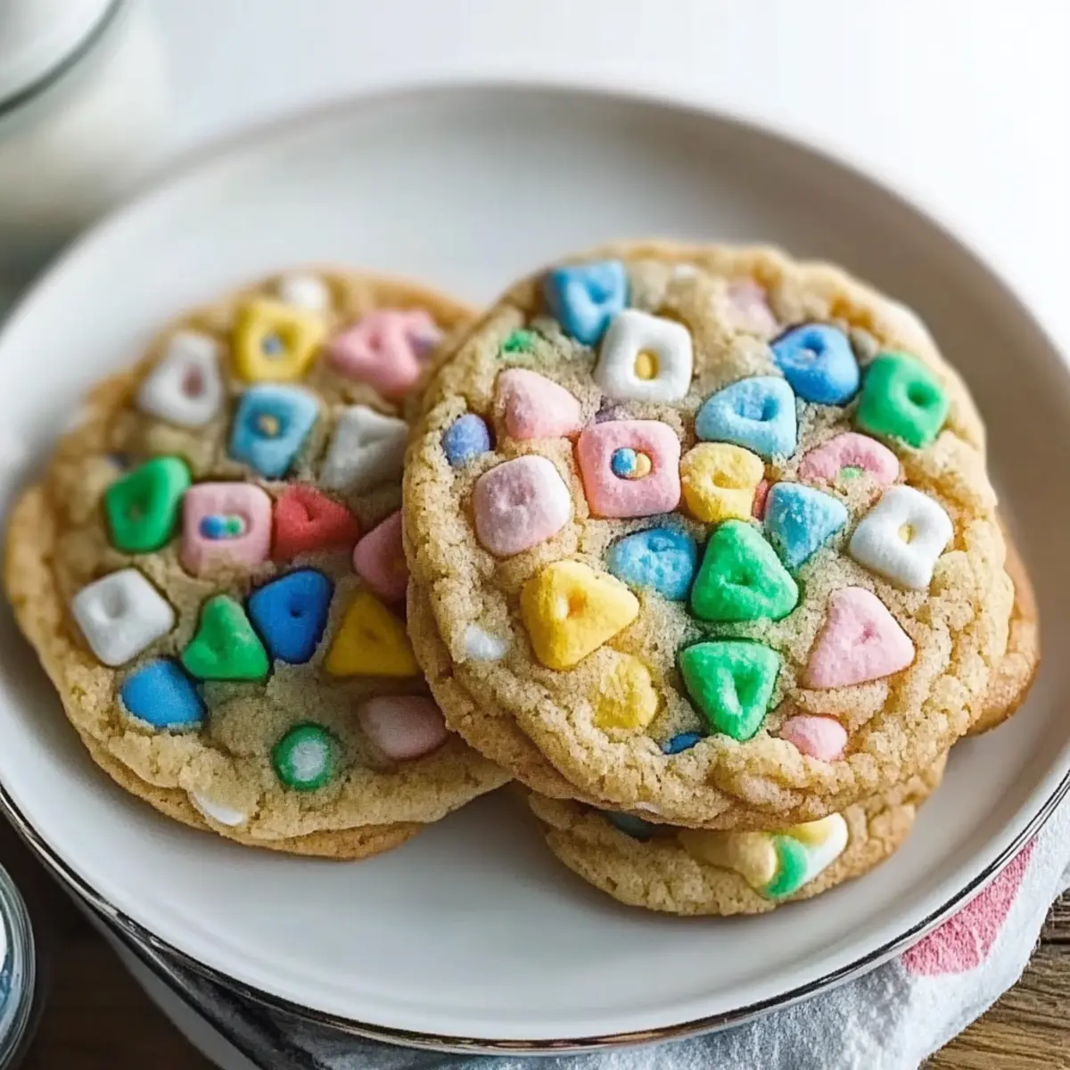 Yes, you can freeze these whimsical treats! To freeze baked Lucky Charms Cookies, place them in a freezer-safe container or bag—layered with parchment paper to prevent sticking—for up to 3 months. For unbaked dough balls, scoop them onto a parchment-lined sheet, freeze until solid, then transfer to a zip-top bag. They can also be stored for up to 3 months. When you’re ready to enjoy, simply bake from frozen, adding a minute or two to the baking time!