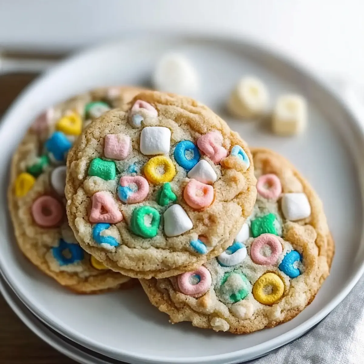 Absolutely! For the best Lucky Charms Cookies, select fresh ingredients. Look for butter that’s slightly softened but not melted—this gives you the perfect creamy texture when mixed. Eggs should be fresh, and using high-quality vanilla extract enhances the overall flavor of your cookies. If you opt for brown sugar, ensure it’s packed firmly in the measuring cup for the desired chewiness.