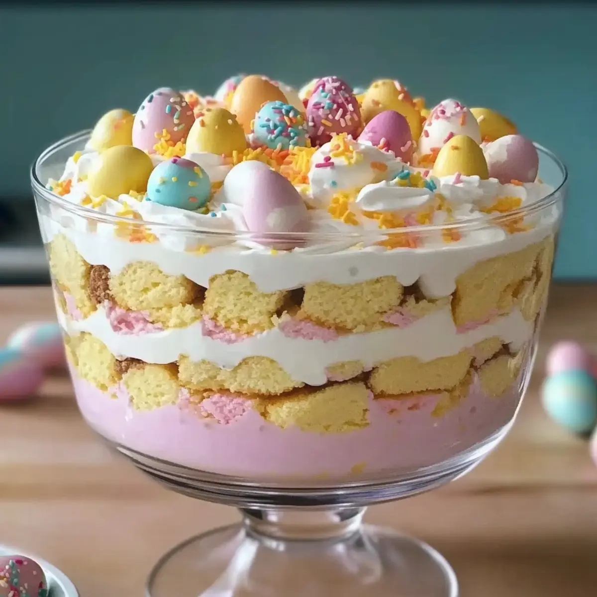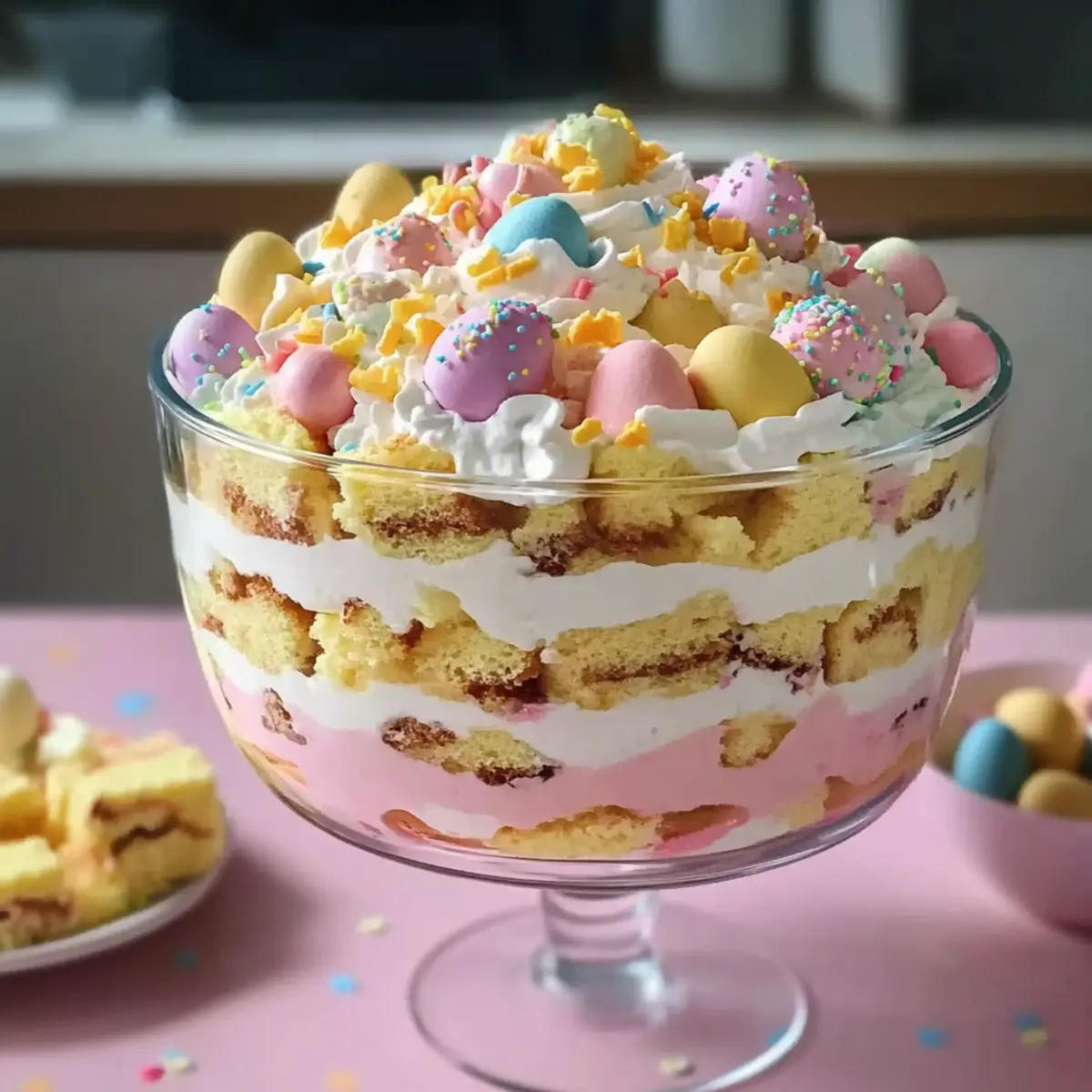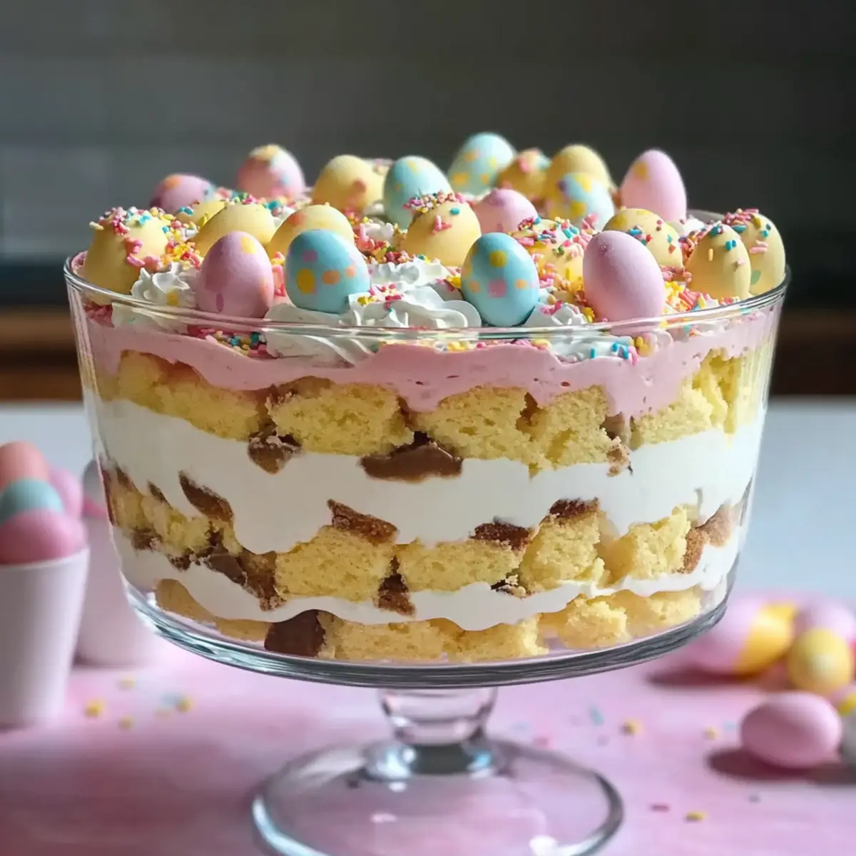 Delightful Easter Trifle Dessert with Pastel Layers and Cream