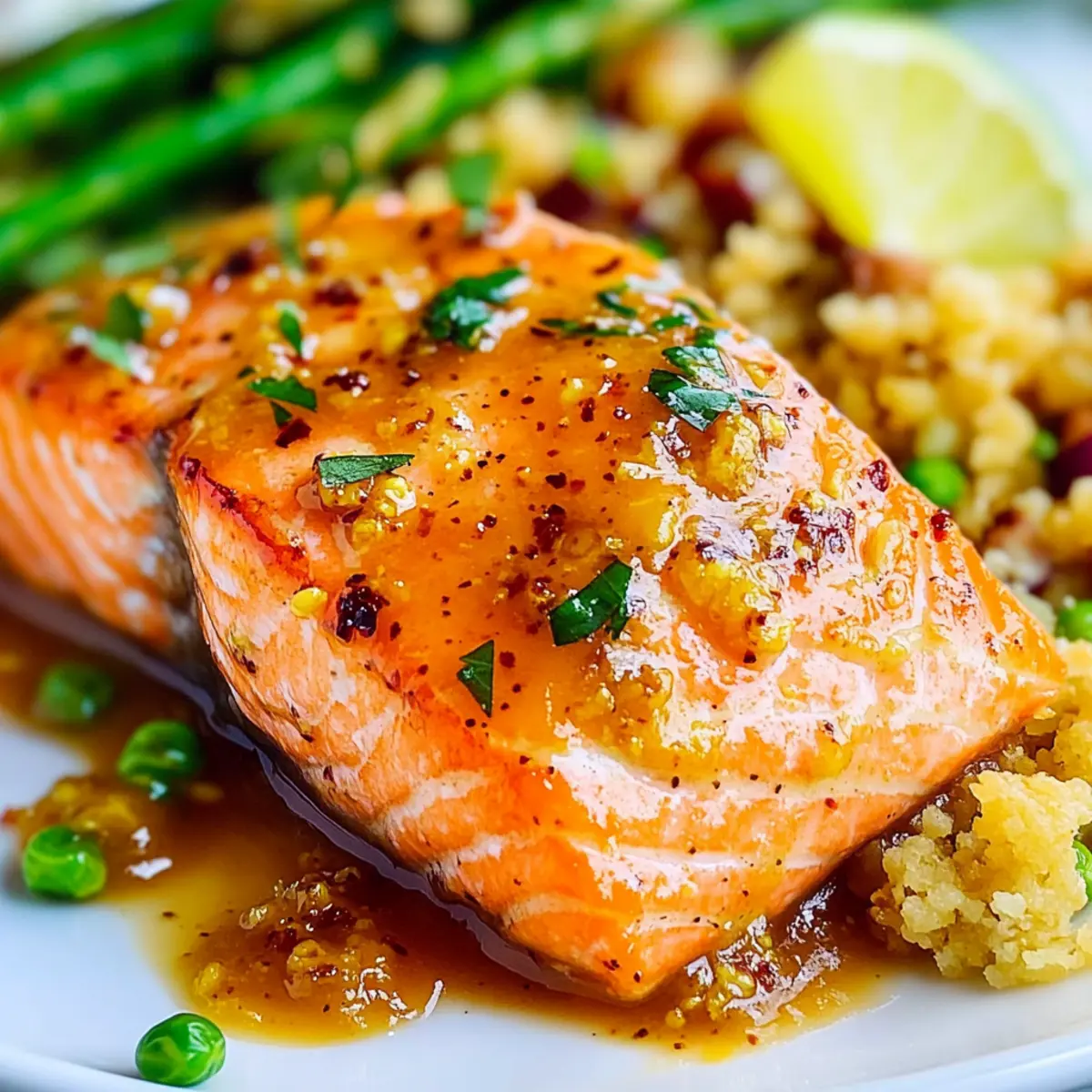 Preparing this Apricot Dijon Glazed Salmon ahead of time is a game-changer for busy weeknights! You can mix the glaze (apricot preserves, mustard, soy sauce, lime juice, ginger, and garlic) and store it in an airtight container in the fridge for up to 3 days. Additionally, if you want to save time, marinate the salmon in the glaze for up to 24 hours beforehand for an even richer flavor. To maintain quality, store the salmon covered in the refrigerator, and when you’re ready to cook, simply place the marinated salmon in the baking dish, brush on any additional glaze, and bake as directed. This way, you’ll have a gourmet meal ready to impress in no time!