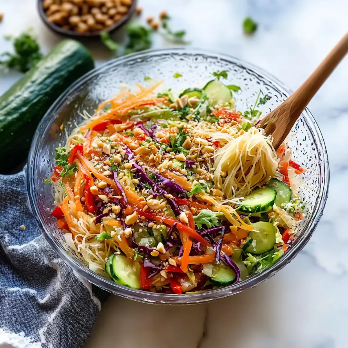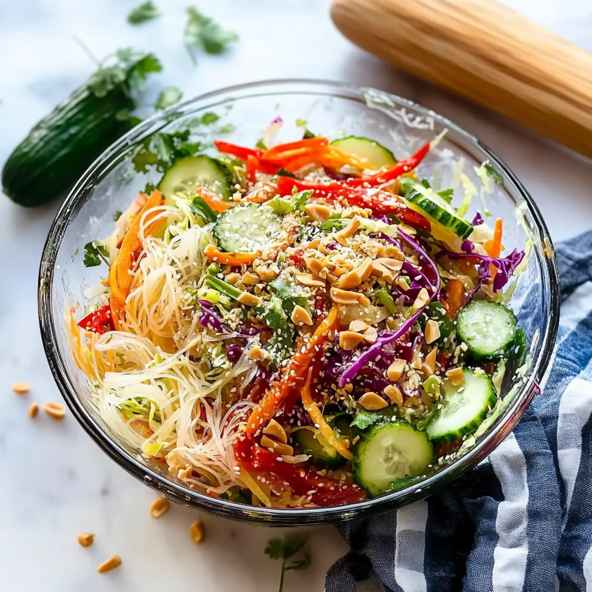 Noodle Preparation: Rinse rice noodles with cold water after cooking to stop the cooking process and keep them from sticking together; this keeps your salad light and enjoyable.