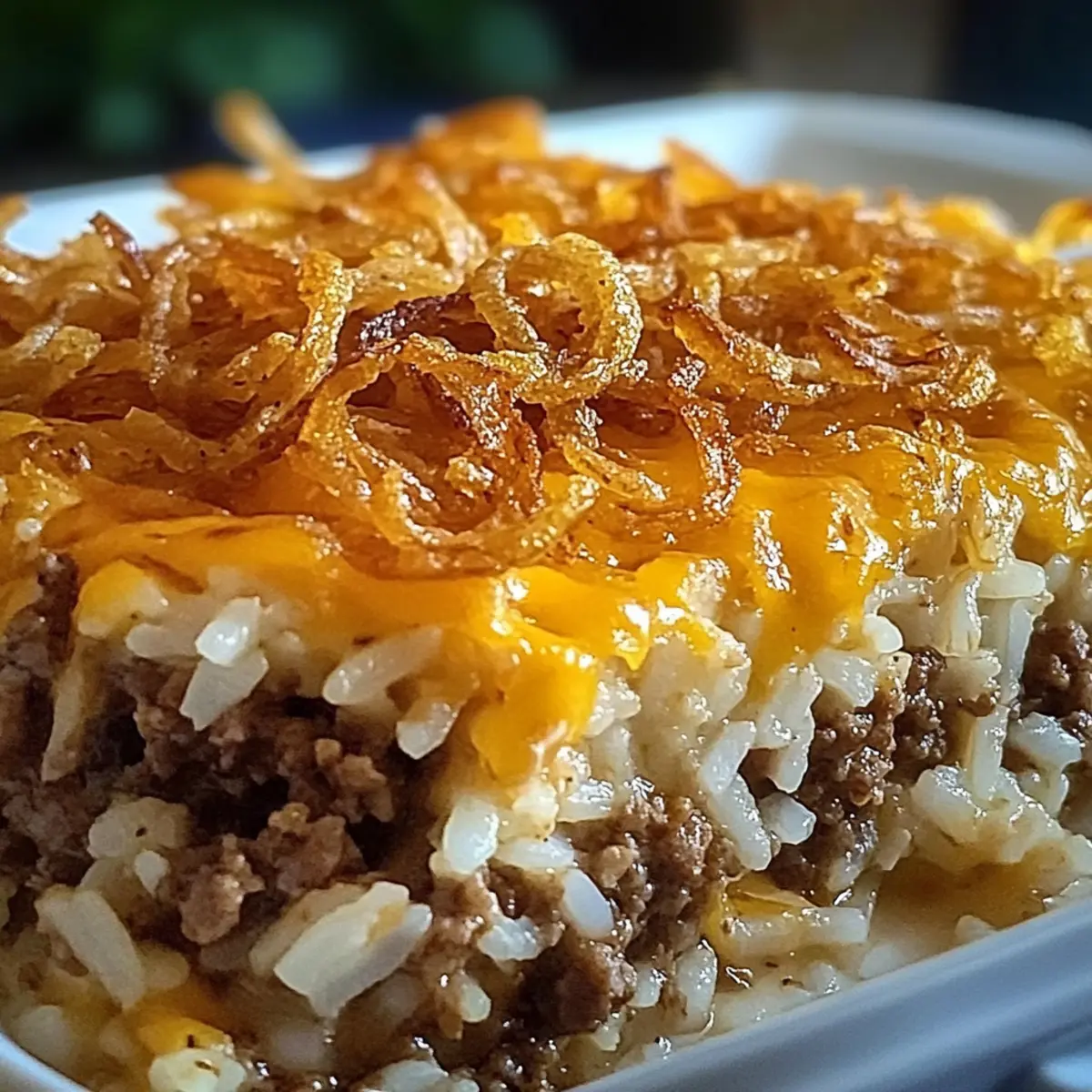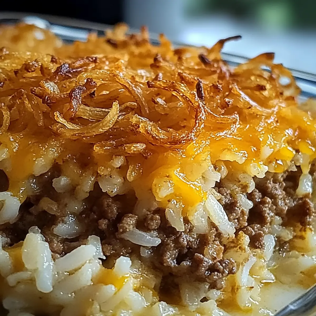 Comforting French Onion Ground Beef and Rice Casserole Delight