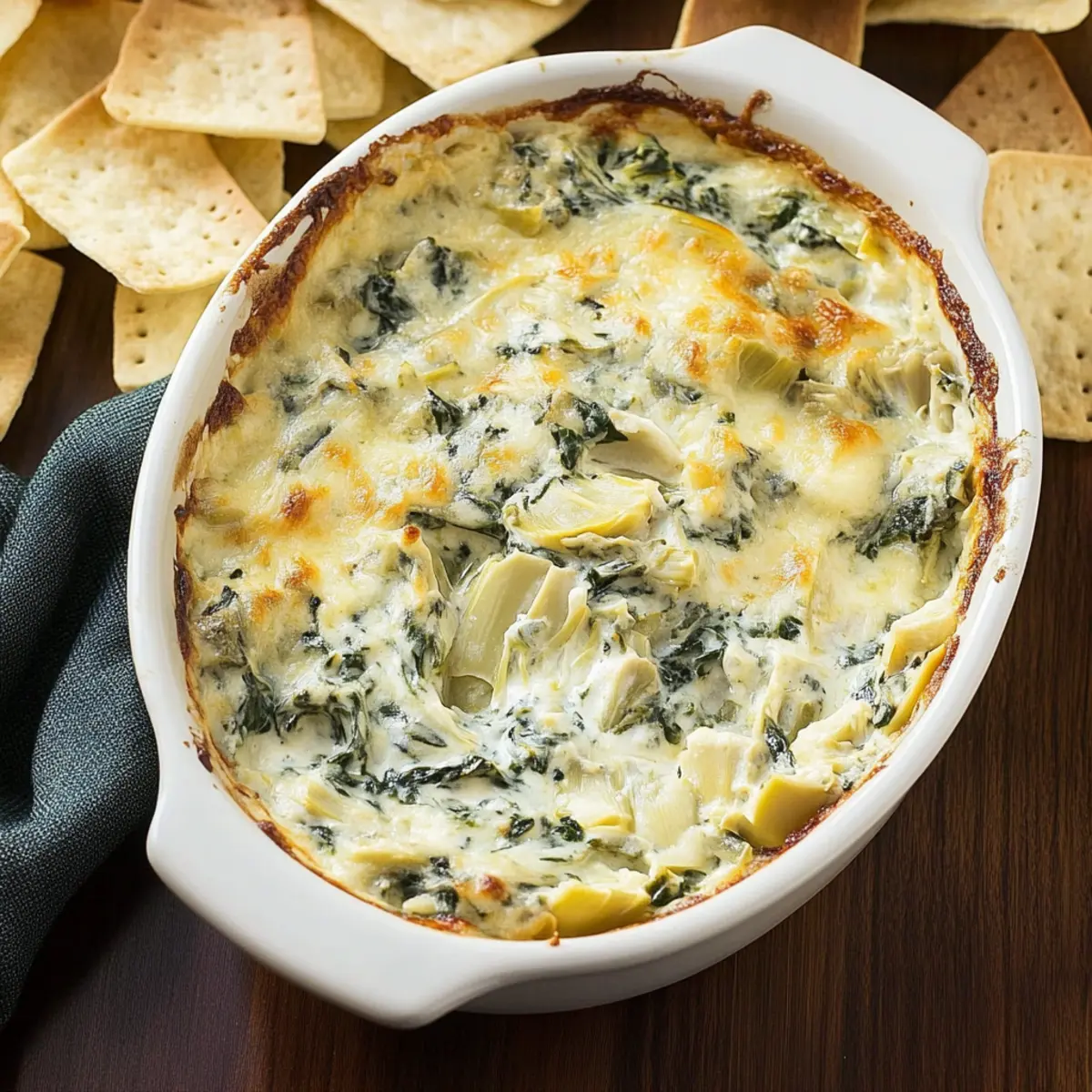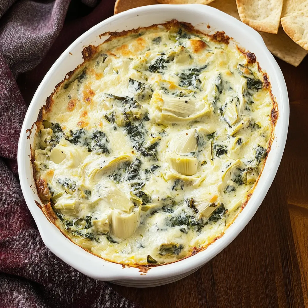 Once baked, carefully remove the Spinach Artichoke Dip from the oven and allow it to cool for a minute before serving. Pair it with crispy crostini, tortilla chips, or fresh vegetable sticks. The warmth and creaminess of this dip will keep the gathering lively and enjoyable, making it the highlight of your appetizer spread!
