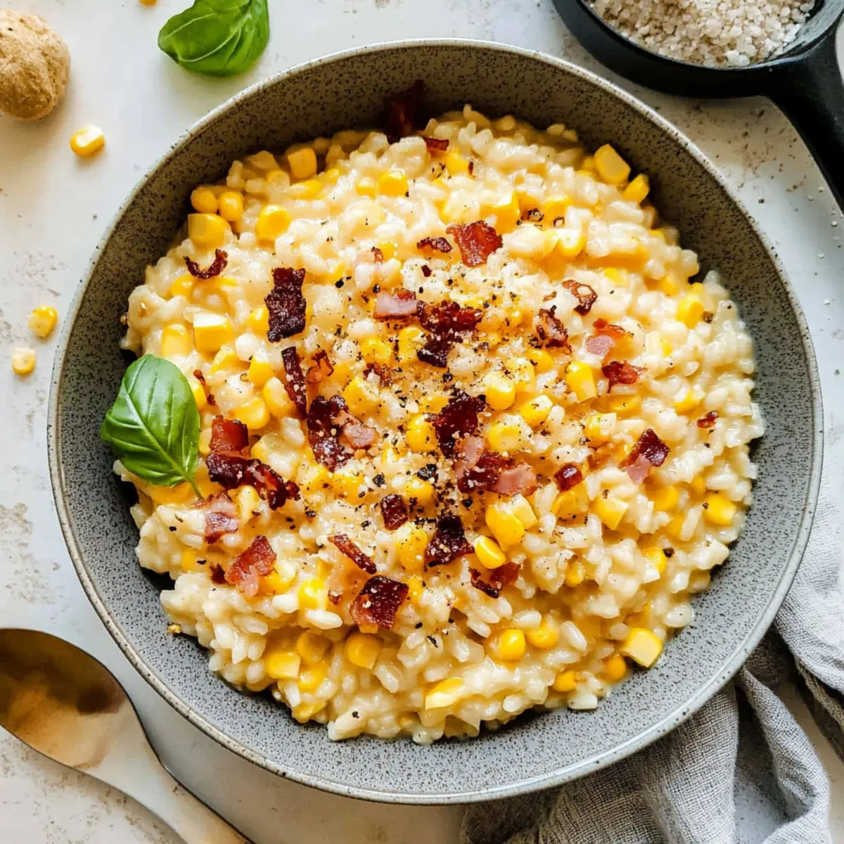 Creamy Comfort: This risotto is the epitome of summer comfort food, featuring rich, creamy arborio rice infused with the sweetness of fresh corn.