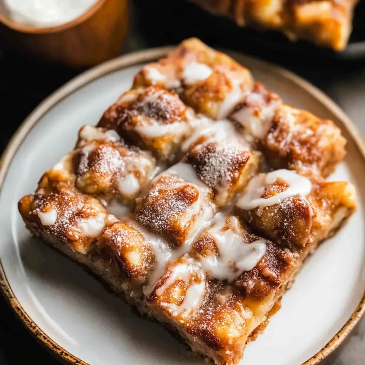 Deliciously Unique: Each slice offers a chewy texture with a crispy edge, setting it apart from traditional cinnamon rolls, making it even more appealing.