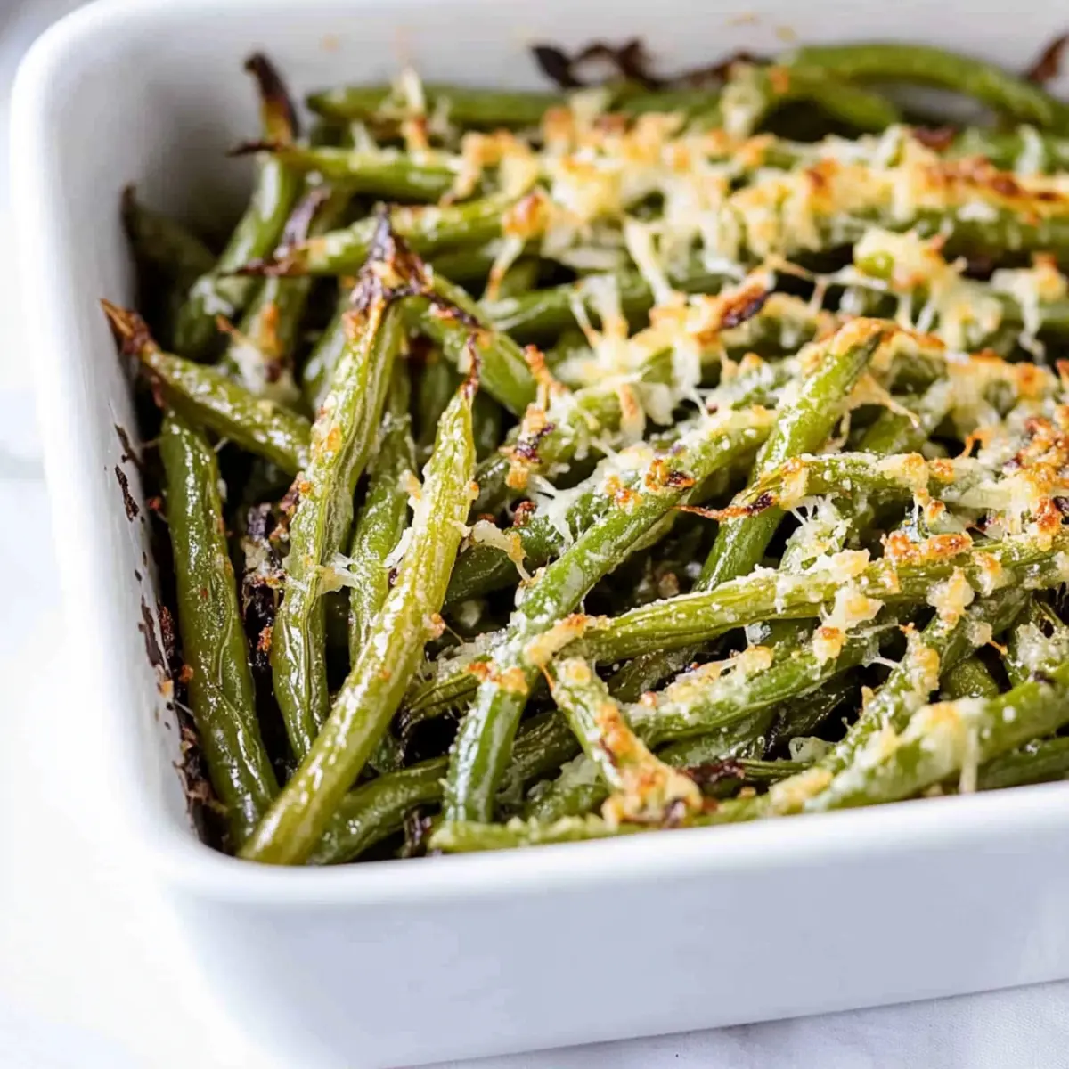 Once your Garlic Parmesan Green Beans are perfectly roasted, carefully remove them from the oven. Taste and adjust seasoning with more salt and pepper, if desired. For an extra touch, garnish with fresh chopped parsley and additional Parmesan cheese before serving. Enjoy this tasty and easy side dish!
