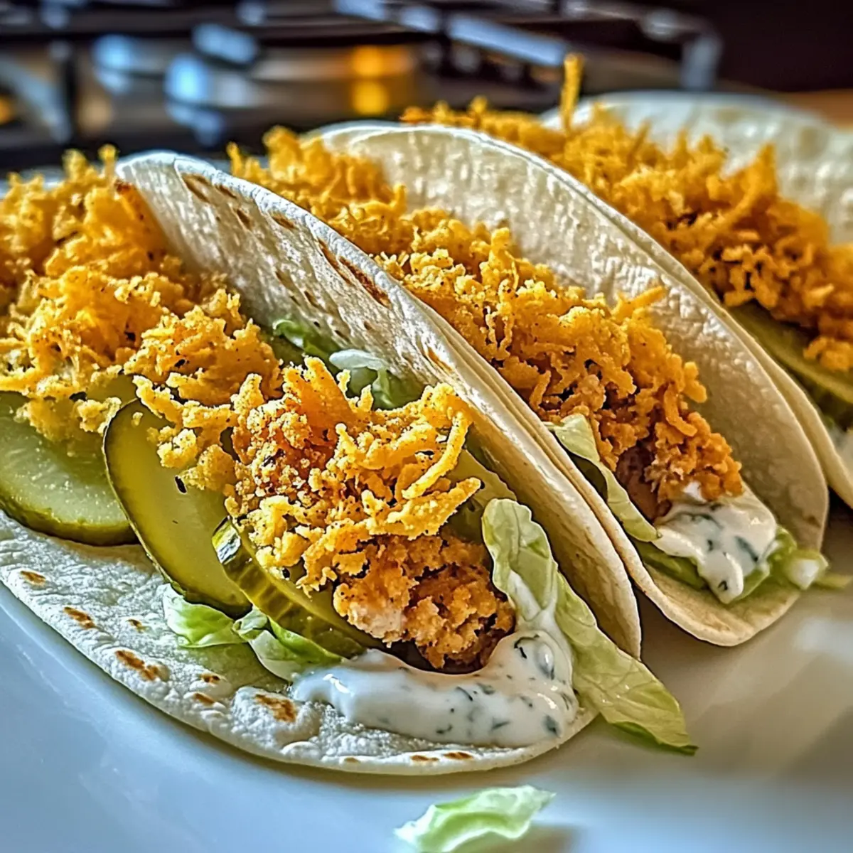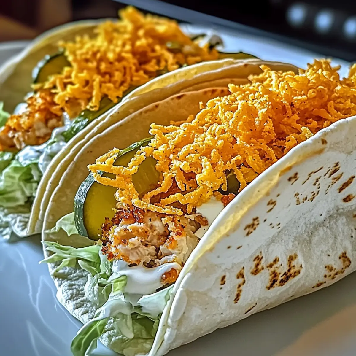 These Dill Pickle Ranch Smash Chicken Tacos are a quick weeknight meal that mixes flavors of dill pickles and ranch dressing for a crowd-pleasing delight.