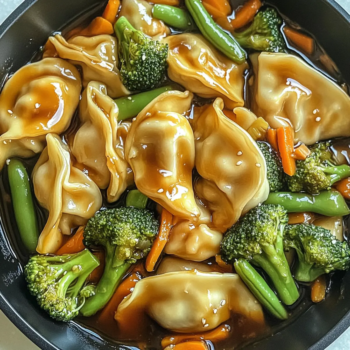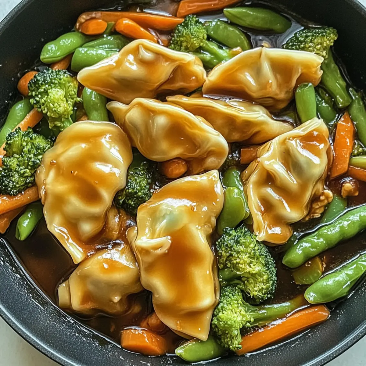 - Combine Ingredients: Return potstickers to skillet, drizzle prepared sauce, and cook until thickened.