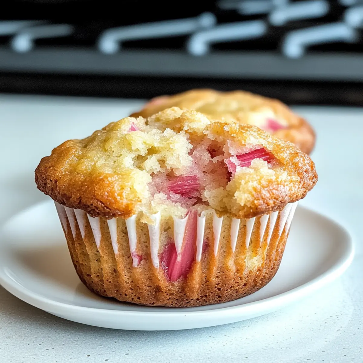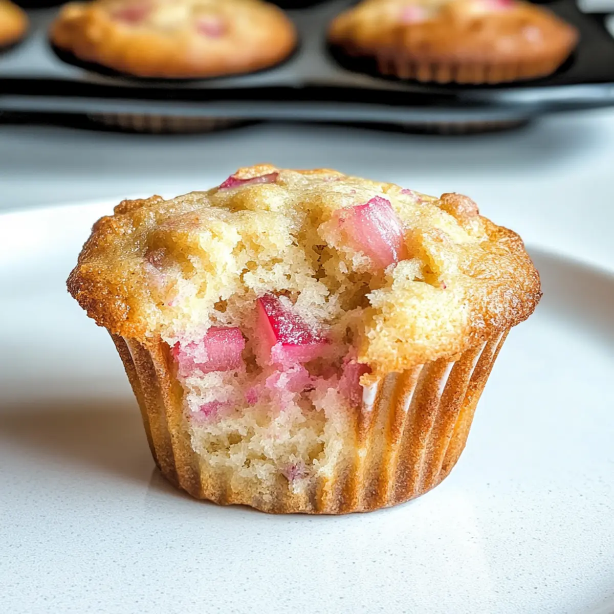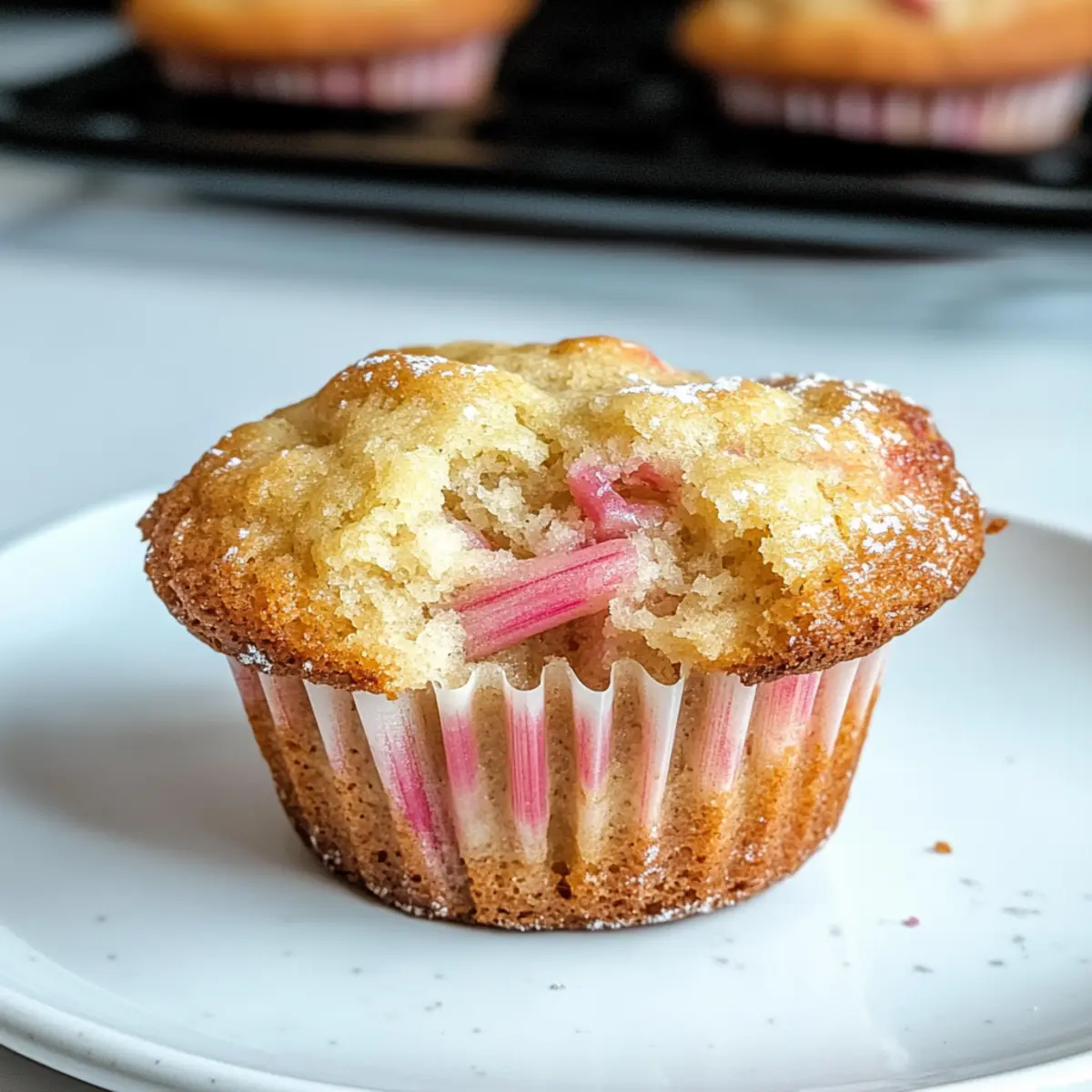 Delightful Moist Rhubarb Muffins with Yogurt, balancing sweetness and tartness, perfect for breakfast.