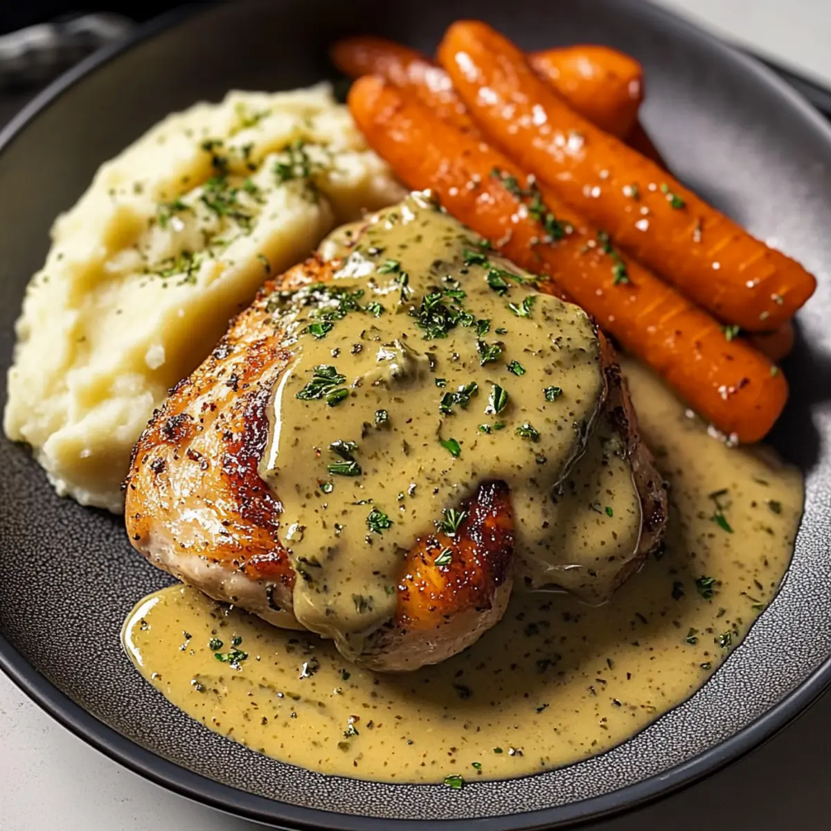 Creamy Herb Chicken with Mashed Potatoes & Glazed Carrots Delight