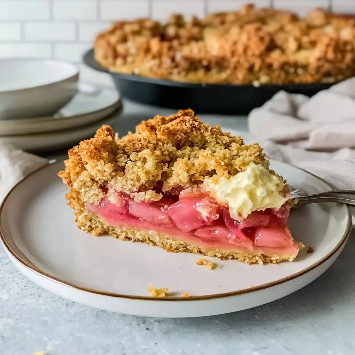 Sweetness Adjustment: If you prefer a less-sweet cake, reduce the sugar in the crust slightly, allowing the natural tartness of the rhubarb to shine.