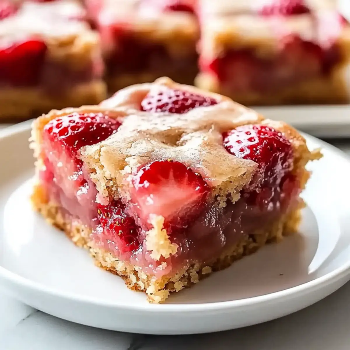 I often hear this concern, and it’s usually due to overly juicy strawberries or underbaking. If your strawberries are soaking wet, drain and pat them dry before adding them to the batter. Additionally, ensure you bake the blondies long enough—check with a toothpick; it should come out clean and the center should spring back lightly. If they’re still gooey, they might need a few more minutes in the oven!